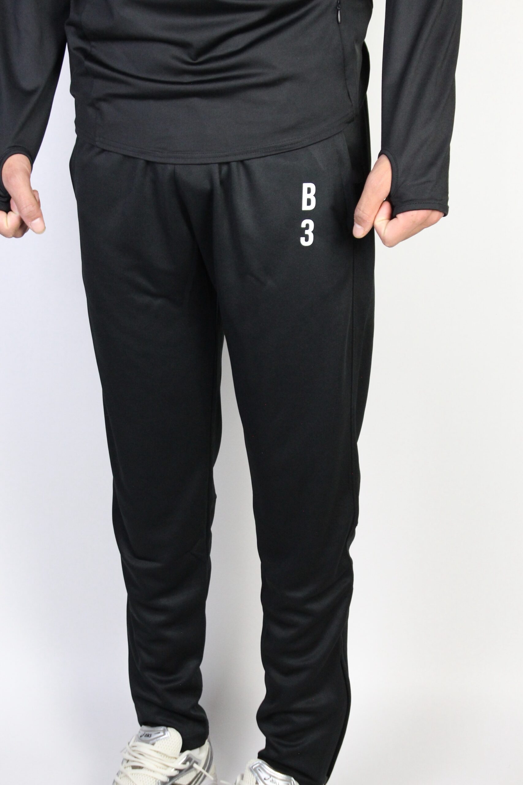 elasticated waistband with an adjustable drawcord for ultimate comfort and the perfect fit, as well as auto-lockable zip openings to the ankle. The Training Pants are branded with our b3 number branding